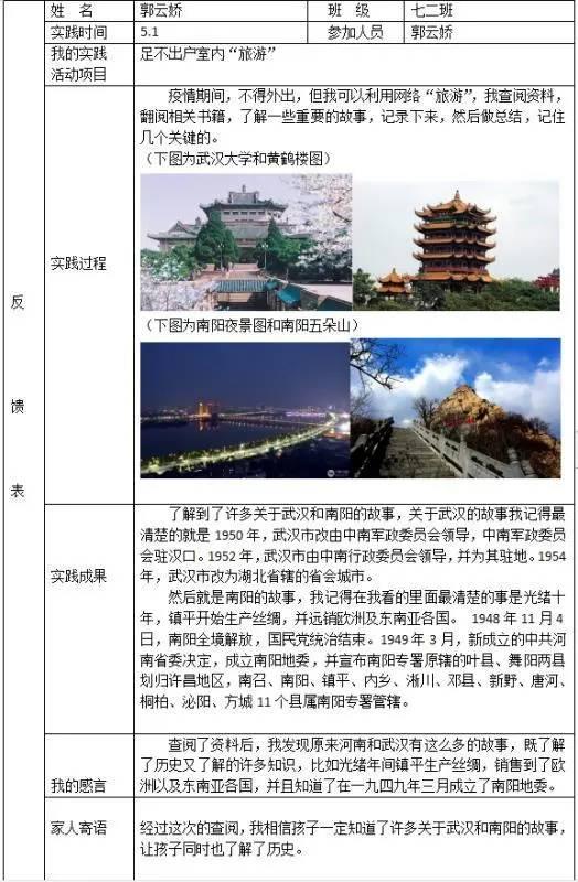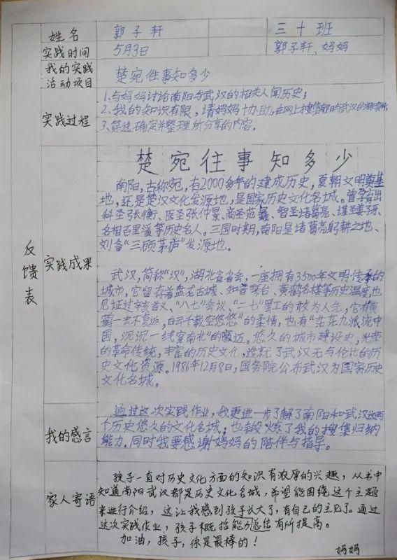 2020年3月20日,中共中央、國(guó)務(wù)院發(fā)布《關(guān)于全面加強(qiáng)新時(shí)代大中小學(xué)勞動(dòng)教育的意見(jiàn)》,南陽(yáng)市實(shí)驗(yàn)學(xué)校利用“五一”節(jié)開(kāi)展勞動(dòng)課程,向全體同學(xué)發(fā)出了“五個(gè)一”勞動(dòng)節(jié)實(shí)踐活動(dòng)倡議書(shū),我們通過(guò)云游、了解武漢和南陽(yáng)的故事、美景、美食等,在家長(zhǎng)的陪伴引領(lǐng)下,選擇自己喜歡的某一個(gè)項(xiàng)目挑戰(zhàn),與家人一起,宅在家,共同抗疫,用實(shí)際行動(dòng)來(lái)理解勞動(dòng)節(jié)的意義,致敬身邊的勞動(dòng)者!下面來(lái)看看同學(xué)們“五個(gè)一”的活動(dòng)成果展示吧!