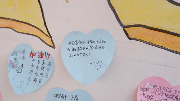 在寄語夢想的環(huán)節(jié),同學們用心寫下自己的心愿。堅定信念,超越自己,放飛夢想。