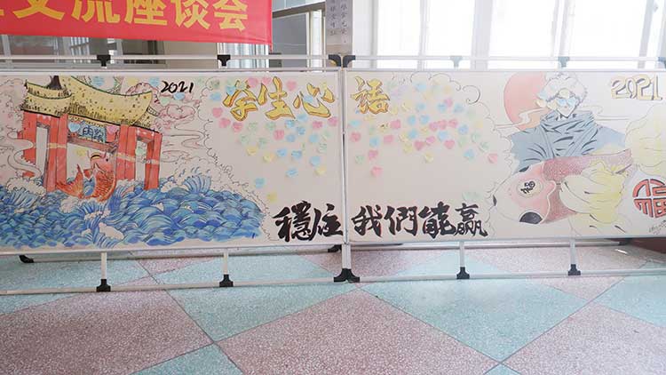 學校的領導和老師提前精心布置了活動現場,現場溫馨而又充滿豪情壯志,同學們井然有序。